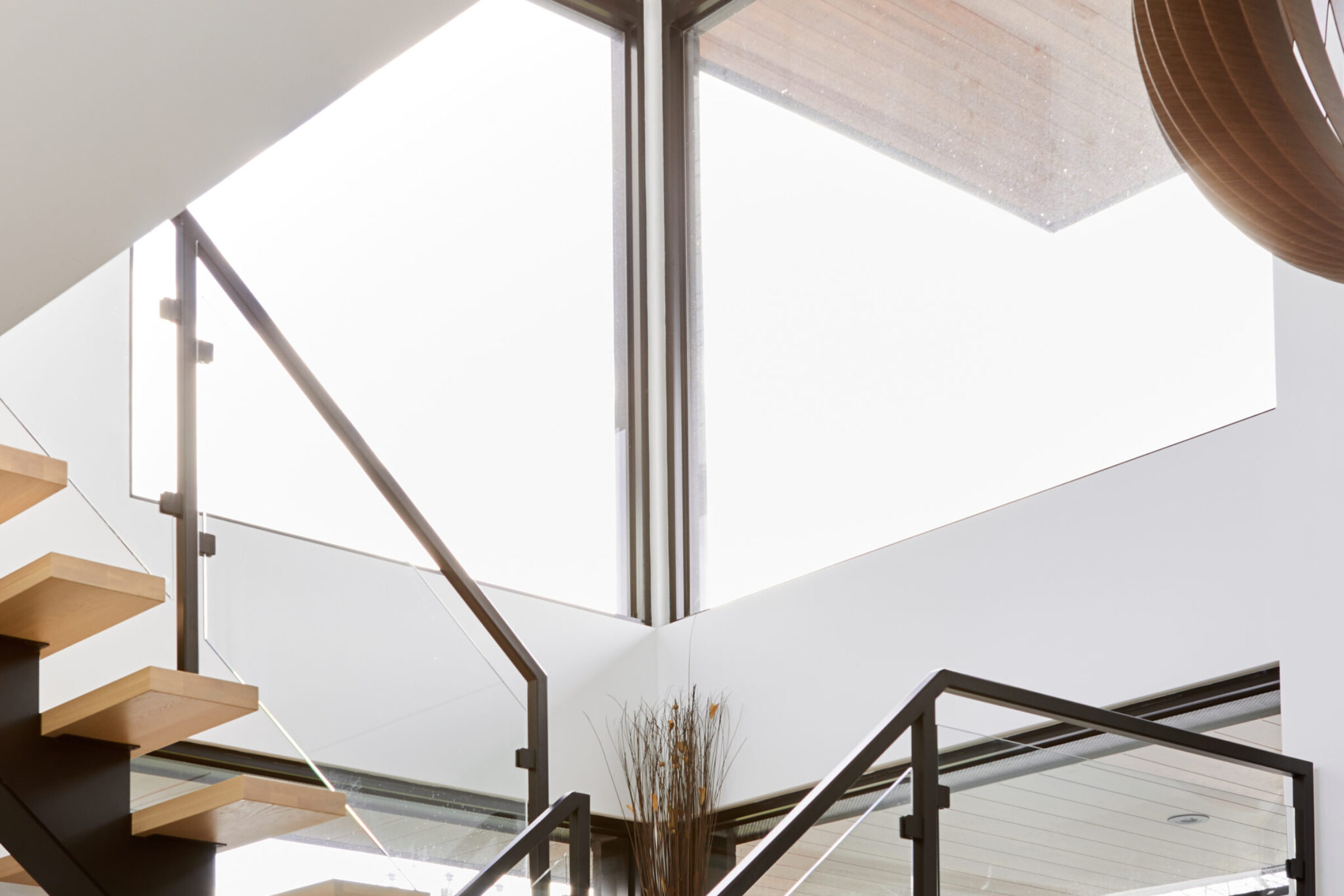 Cette belle résidence moderne sur le bord du fleuve Saint-Laurent bénéficie des meilleures innovations technologiques. Les télévisions 4K s’agencent au décor partout dans la demeure et les composantes ne sont pas visibles puisqu’elles sont centralisées au sous-sol. Les stores permettent d’atteindre le niveau d’éclat du soleil parfait grâce aux capteurs de luminosité. Cinq zones audios utilisant l’interface Sonos permettent aux propriétaires d’écouteur leur musique favorite à l’intérieur comme à l’extérieur.