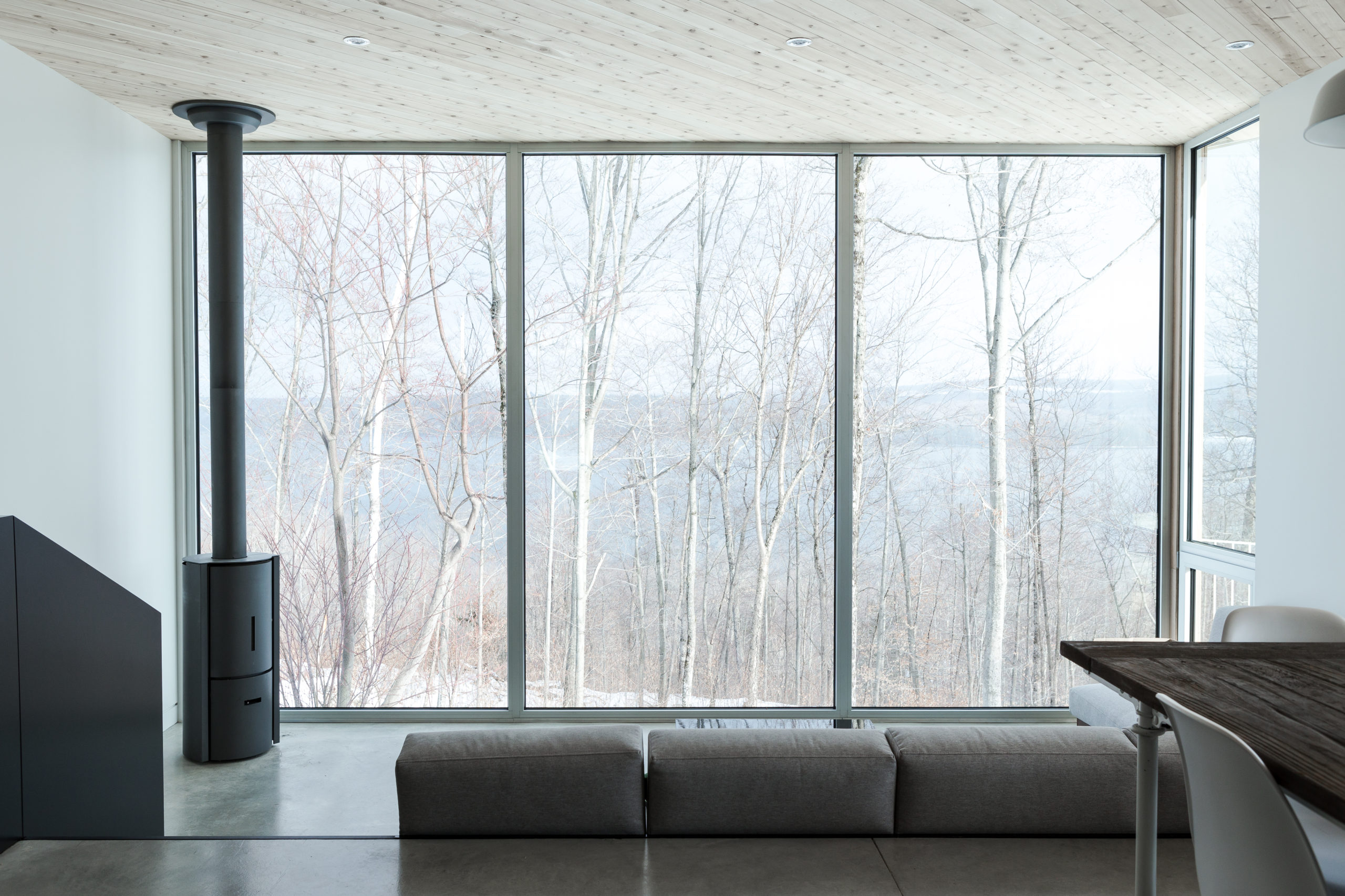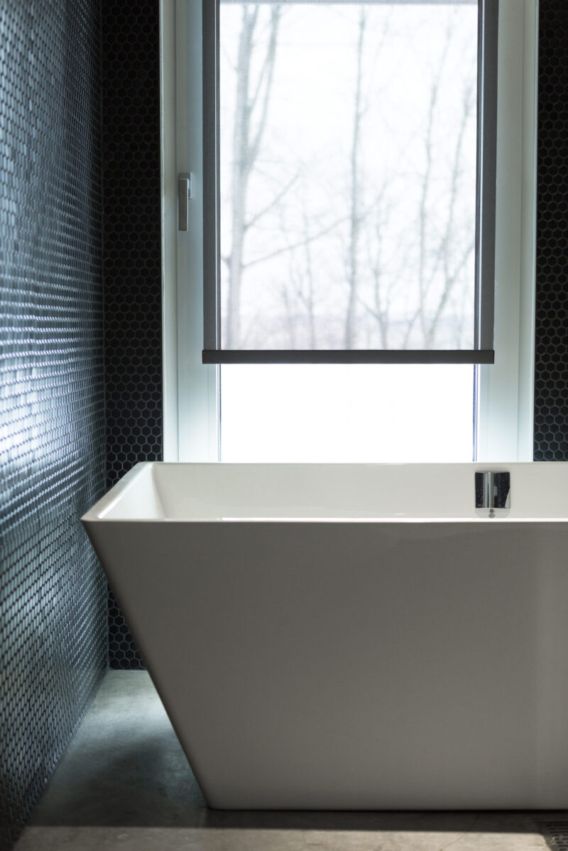 This avant-garde secondary residence has a lovely “open area” appeal. Blinds that adapt to the owner’s lifestyle have been installed, creating a variety of settings for different moods and intimacy. The installation of the blinds complements the structure of the building to produce a most interesting visual effect of giving prominence to nature.